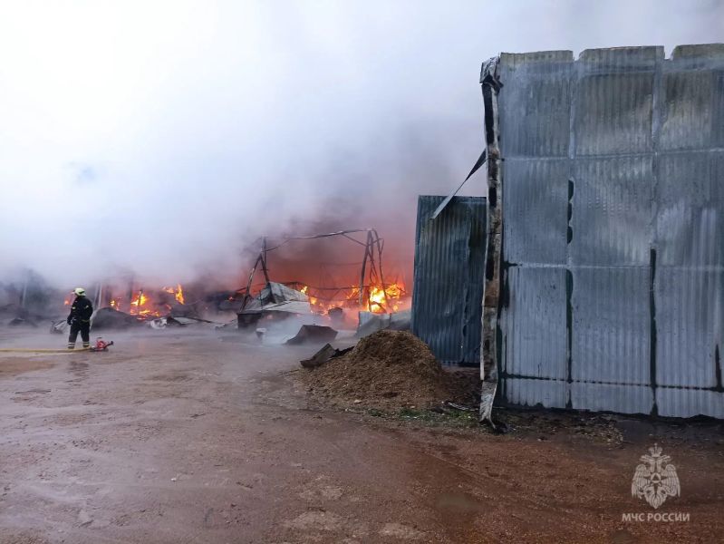 Пламя охватило металлический ангар, при этом огнеборцам удалось предотвратить распространение огня на другие постройки. Пожарным удалось устранить горение на площади 800 квадратных метров, они занимаются проливкой и разбором конструкций.