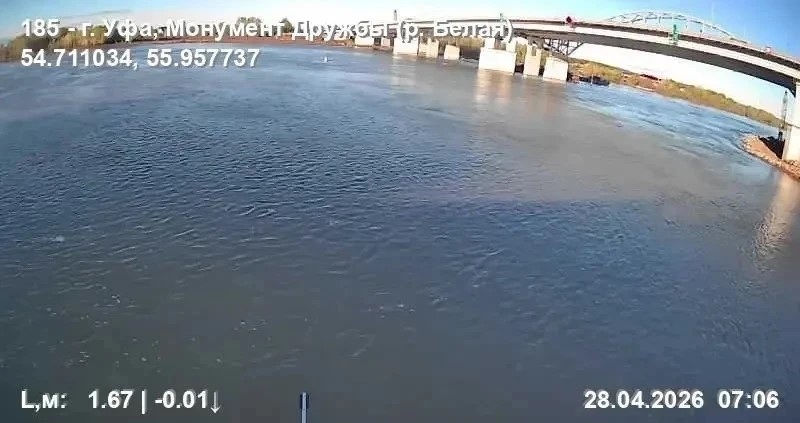 На Белой реке в Уфе в районе Монумента Дружбы уровень воды составляет 169 см.