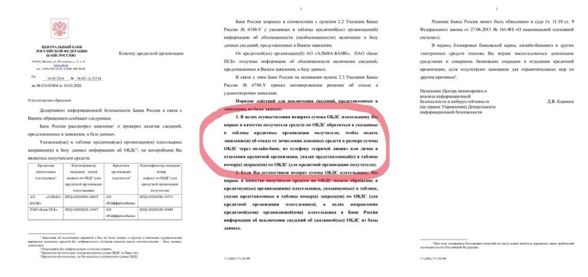 По словам Евгении, как следует из письма ЦБ, исключить из «черной» базы ее могут только «после возврата суммы, полученной по операции без добровольного согласия».